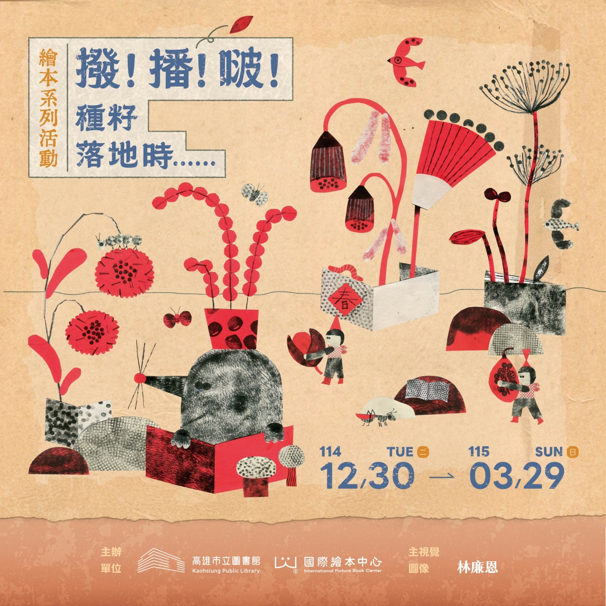 2026年是繪本創作班開課第七年,也將接續進行「第四屆《好繪芽獎》」徵件,國際繪本中心於114年12月30日至115年3月29日期間推出「《撥!播!啵!種籽落地時……》繪本系列活動」做為前導宣傳,並引用「種籽」發芽之前具「生命起源」、「希望」和「未來」等新生之意象、與「種籽」有關的生態主題相互結合,透過三個相似音:「撥」代表翻鬆土壤、「播」象徵播種希望、「啵」則模擬種籽萌芽的聲音做發想,規劃2檔繪本展、2場繪本手作工作坊、1場繪本分享會與1場親子說故事活動,邀請讀者在春節前後參加繪本相關活動、感受作品誕生的喜悅,並持續孕育更多充滿台灣能量的繪本創作,在新的一年種一顆祝福滿滿的繪本種籽🌼