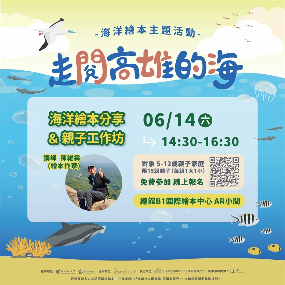 【總館】6/14(六) 14:30-16:30 陳維霖/《走閱高雄的海》海洋繪本親子工作坊