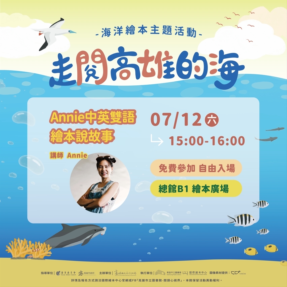 【總館】7/12(六) 15:00-16:00 Annie/《走閱高雄的海》中英雙語繪本說故事