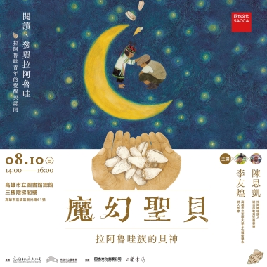 高市圖在暑假期間,與四也文化出版社攜手邀請文學作家(詩人)-李友煌、拉阿魯哇語推組織專案人員(達吉亞勒青年會幹事)-陳思凱,透過繪本《魔幻聖貝:拉阿魯哇族的貝神》分享故事採集的過程、聊聊自己居住的地方,聽眾能透過故事對談,認識臺灣原住民第十五族拉阿魯哇族的族群語言、傳統祭儀文化保存的議題等,一起發現拉阿魯哇族「貝神文化」別具特色的存在!